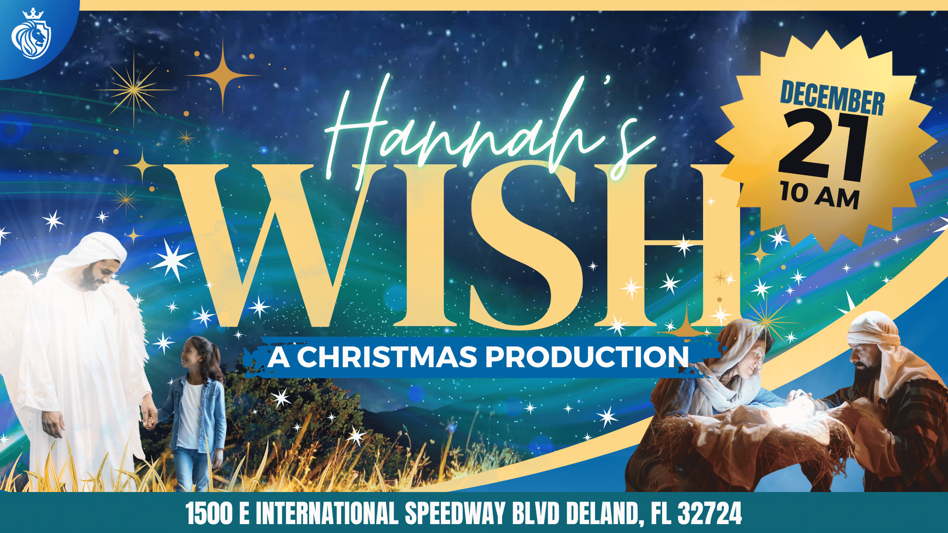 Join us on Sunday, December 21st at 10:00 AM at Faith Life International Church in Deland FL, for a very special Christmas play, Hannah’s Wish: A Christmas Production—written by our very own Pastor Gina! This heartwarming story follows Hannah, a little girl whose greatest desire is to witness the birth of Jesus. The production will feature dancing, a choir, and an encouraging story featuring an amazing cast! We'd love to see you there!